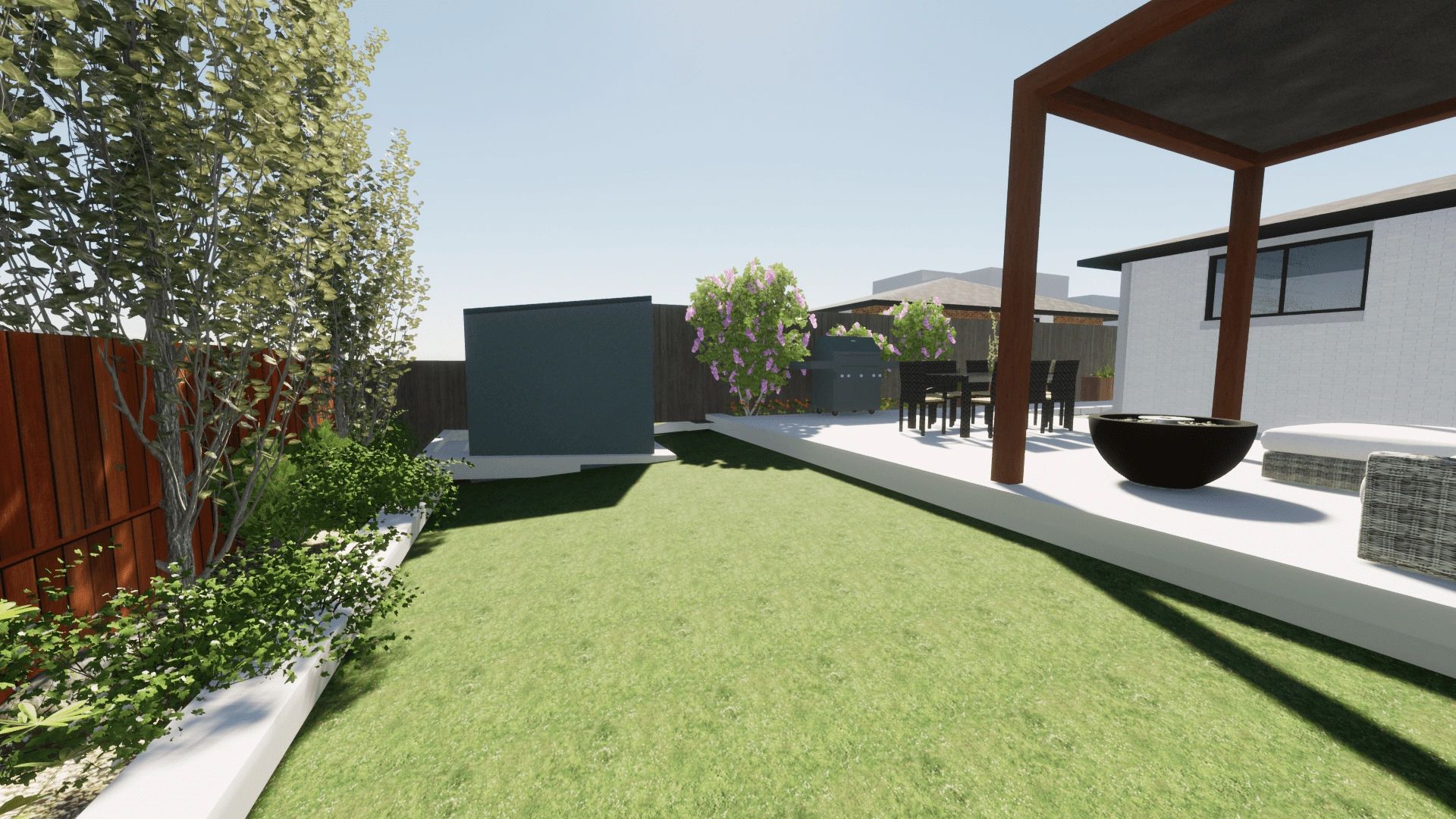 SUMMER VIEW WITH PYRAMIDAL HORNBEAM TREES