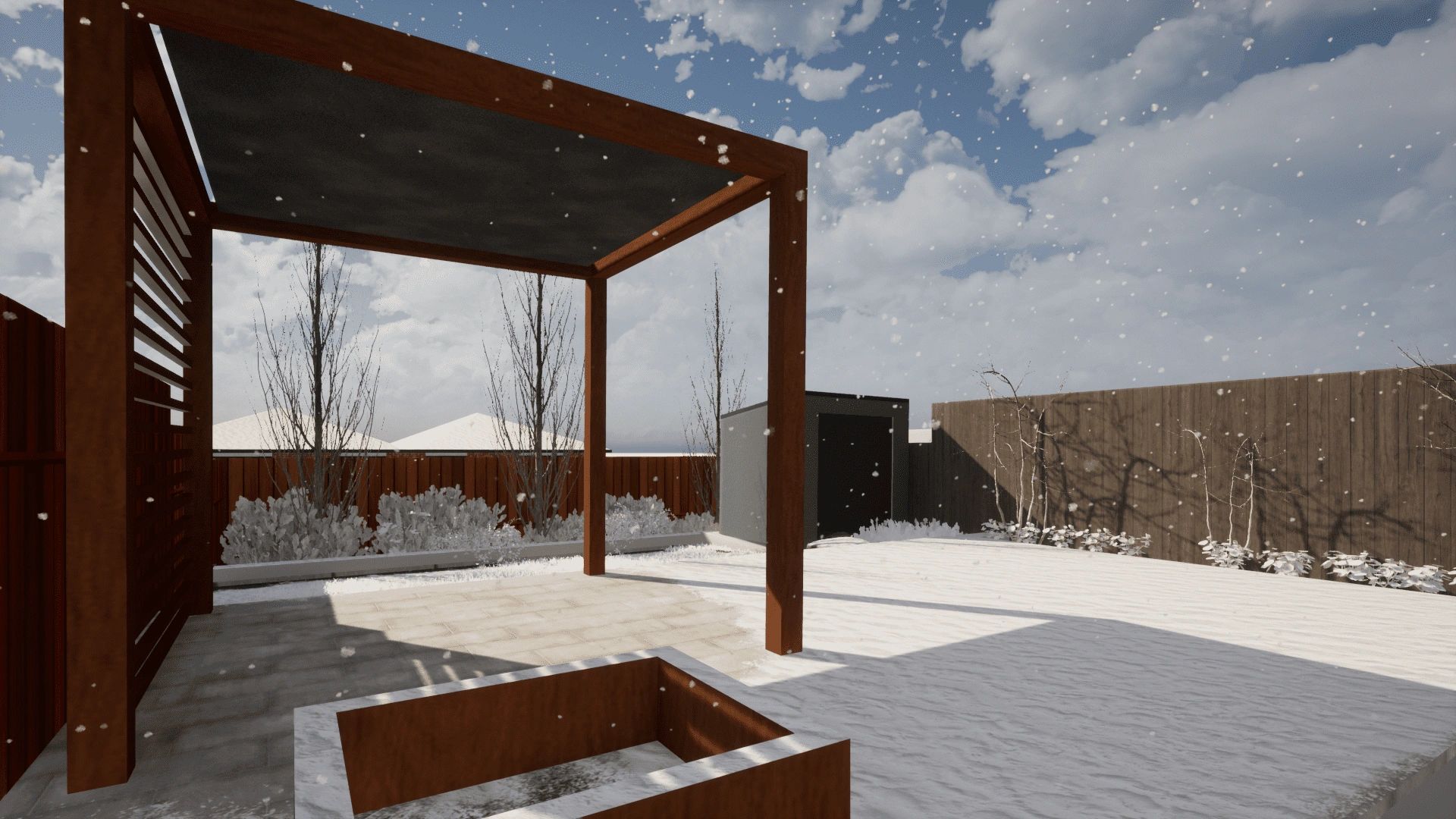 WINTER VIEW WITH PYRAMIDAL HORNBEAM TREES